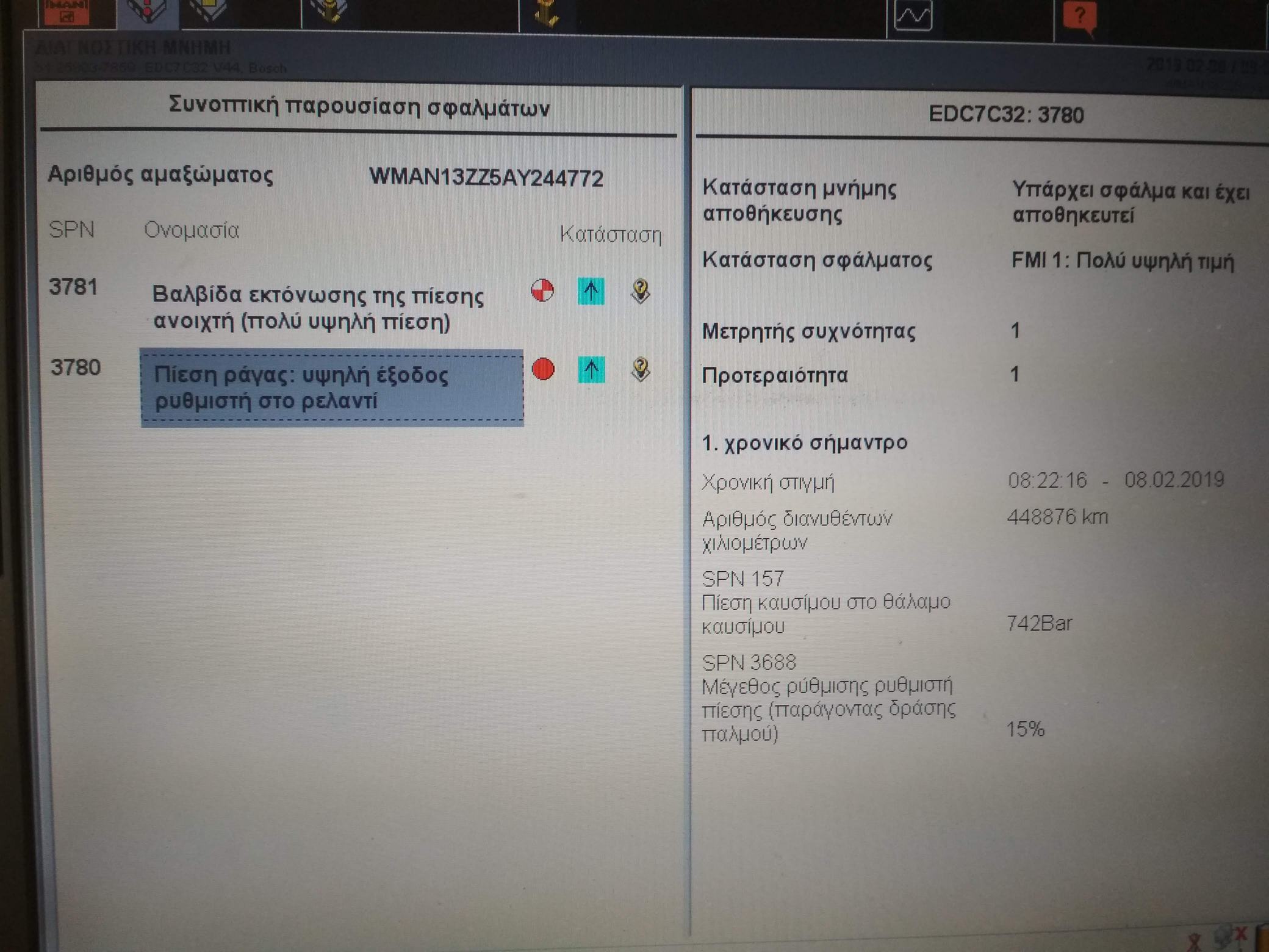 Τέλος θα πρέπει να αναφέρουμε τους πιό συχνά εμφανιζόμενους κωδικούς βλαβών που παρουσιάζονται στα οχήματα TGA TGM TGL TGS και TGX